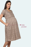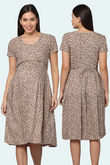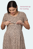 Leopard Print Maternity Dress | 1 Horizontal Zipper | Ideal for Pregnancy & Breastfeeding
