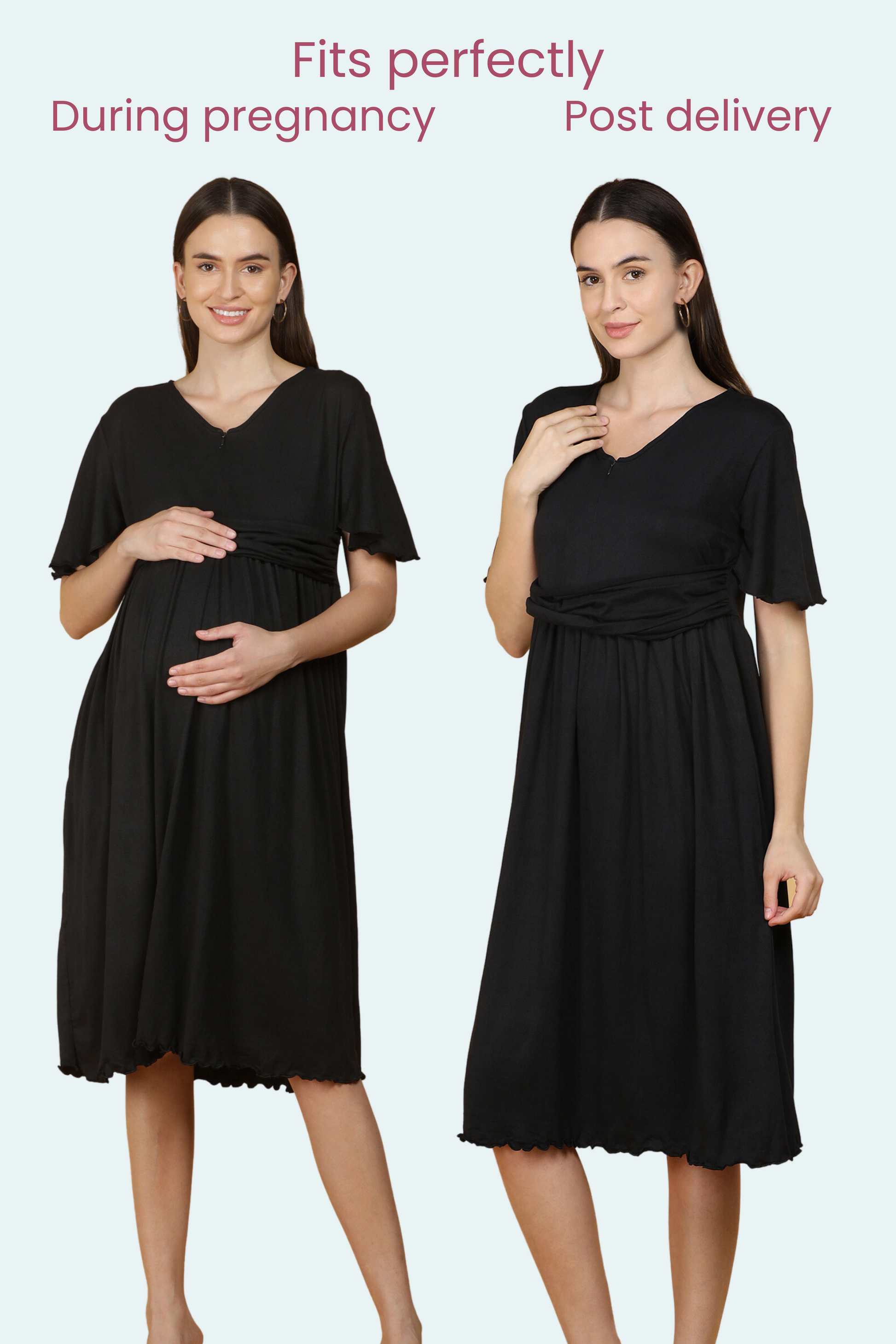 - Timeless black maternity dress, offering an elegant and versatile look.