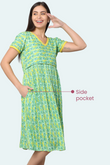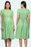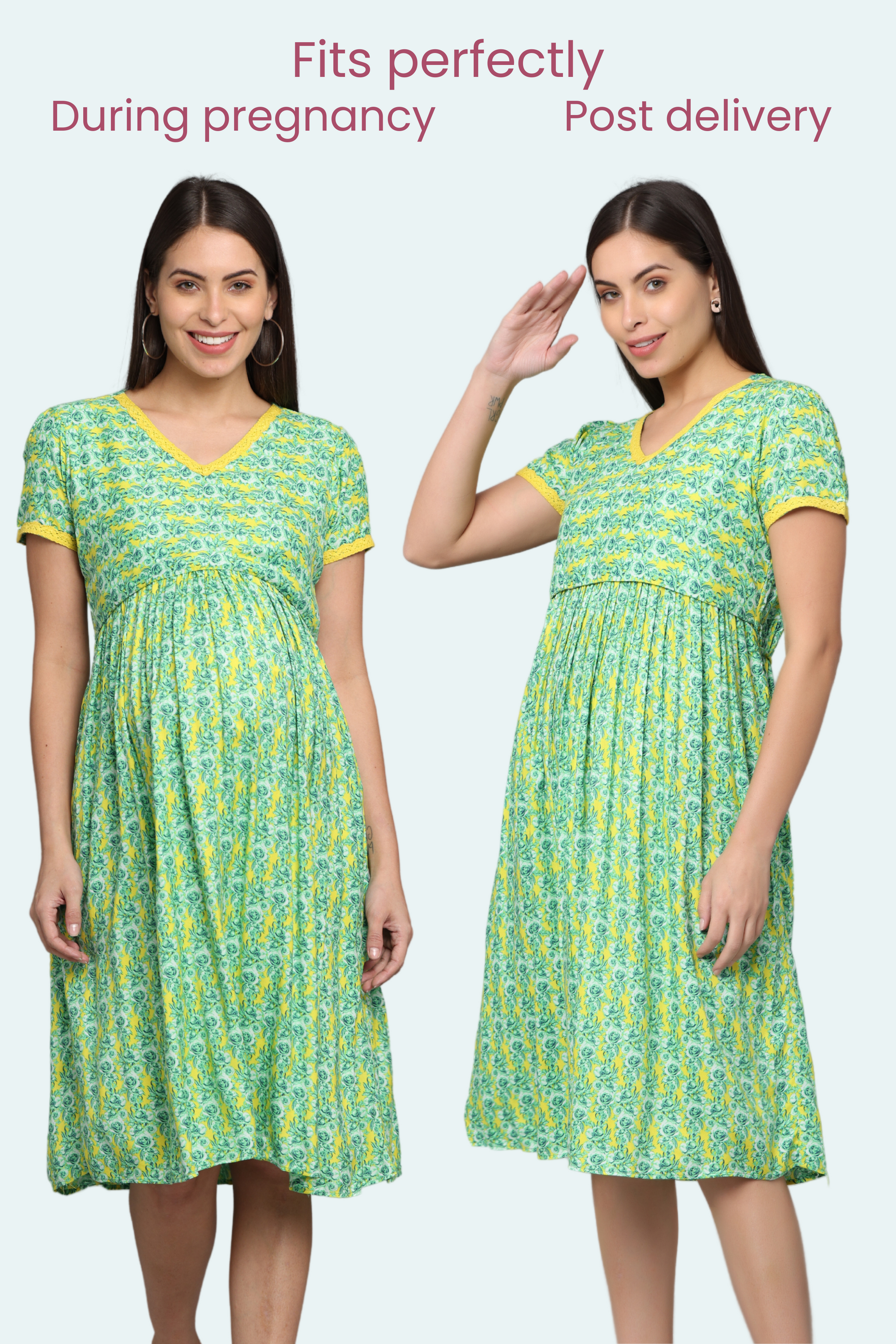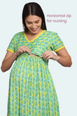 Yellow and Green Floral Maternity Dress | 1 Horizontal Zipper | Perfect for Pregnancy & Breastfeeding