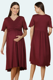 Elegant Maroon Maternity Dress with Front Vertical Zipper | Perfect for Pregnancy & Breastfeeding
